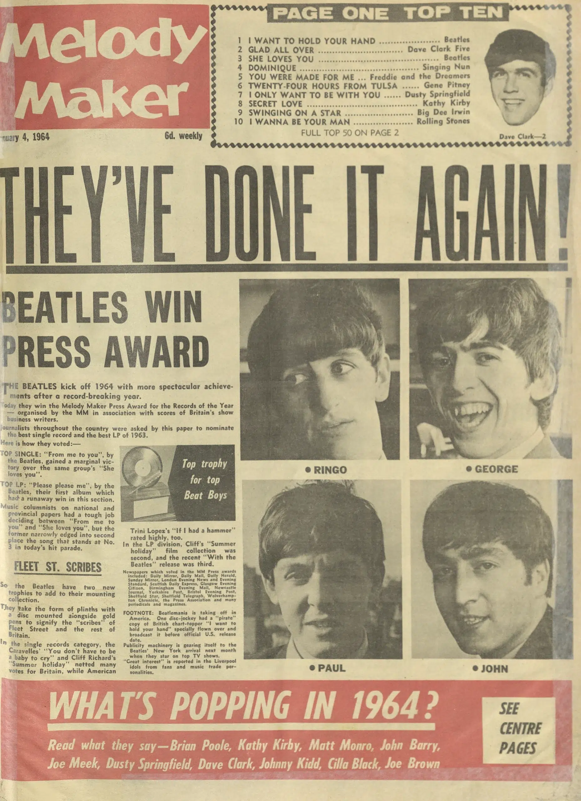 Article January 1964 • The Beatles win the Melody Maker Press Award