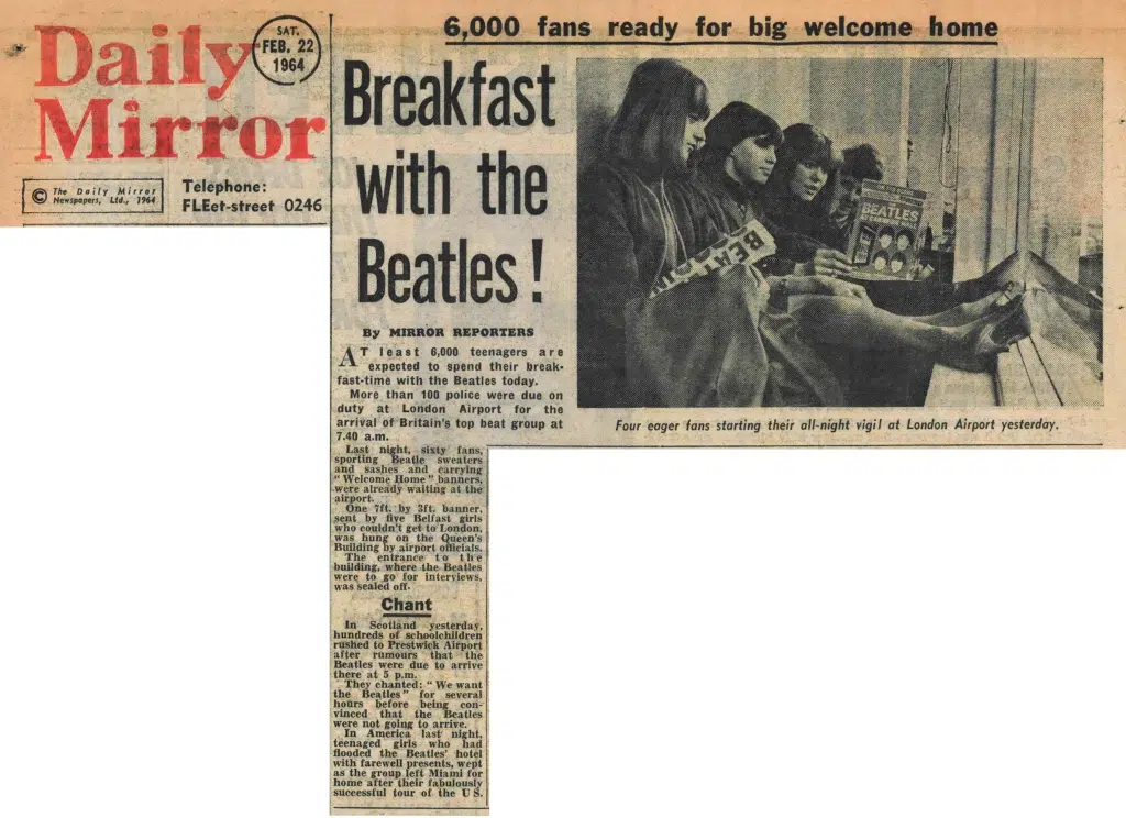Article February 21-22, 1964 • The Beatles fly from Madrid to London