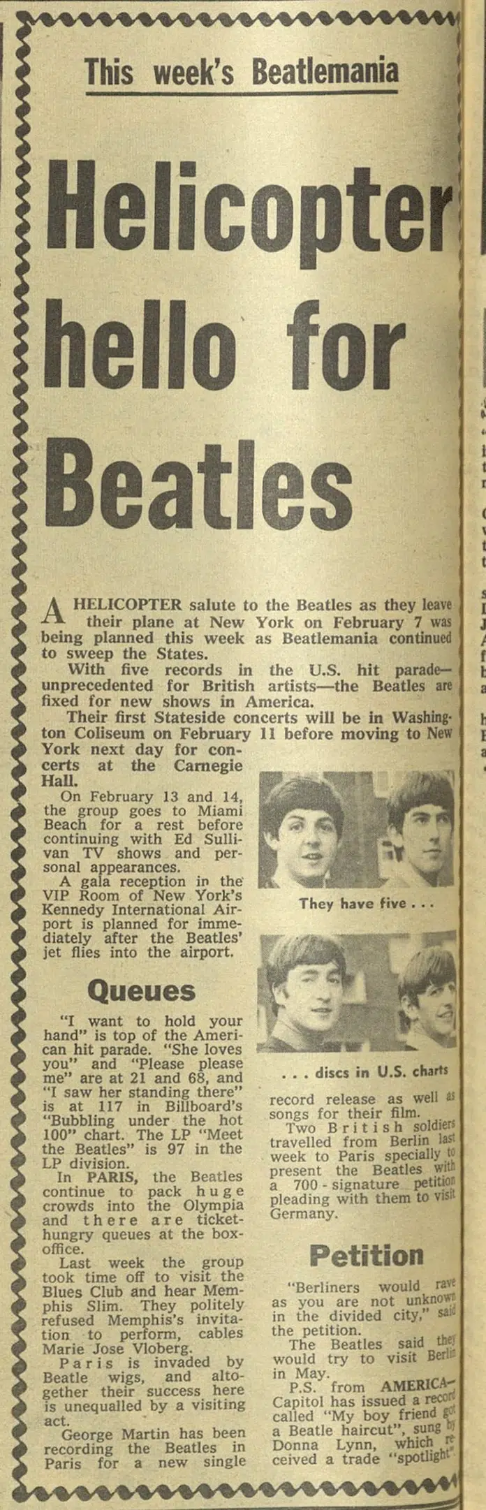 Article Feb 07, 1964 • The Beatles travel to America for the first time