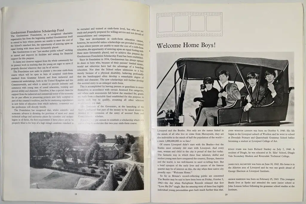In case any readers have just come from Mars, the Beatles are the four long-haired musicians who sing rock’n’roll music and have become as permanent a part of the Liverpool scene as the sight of ferry boats on the Mersey. But, unlike the Mersey ferries the Beatles have been playing in foreign waters: America, Australia, France, and what is even more obnoxiously foreign to Liverpudlians, London.