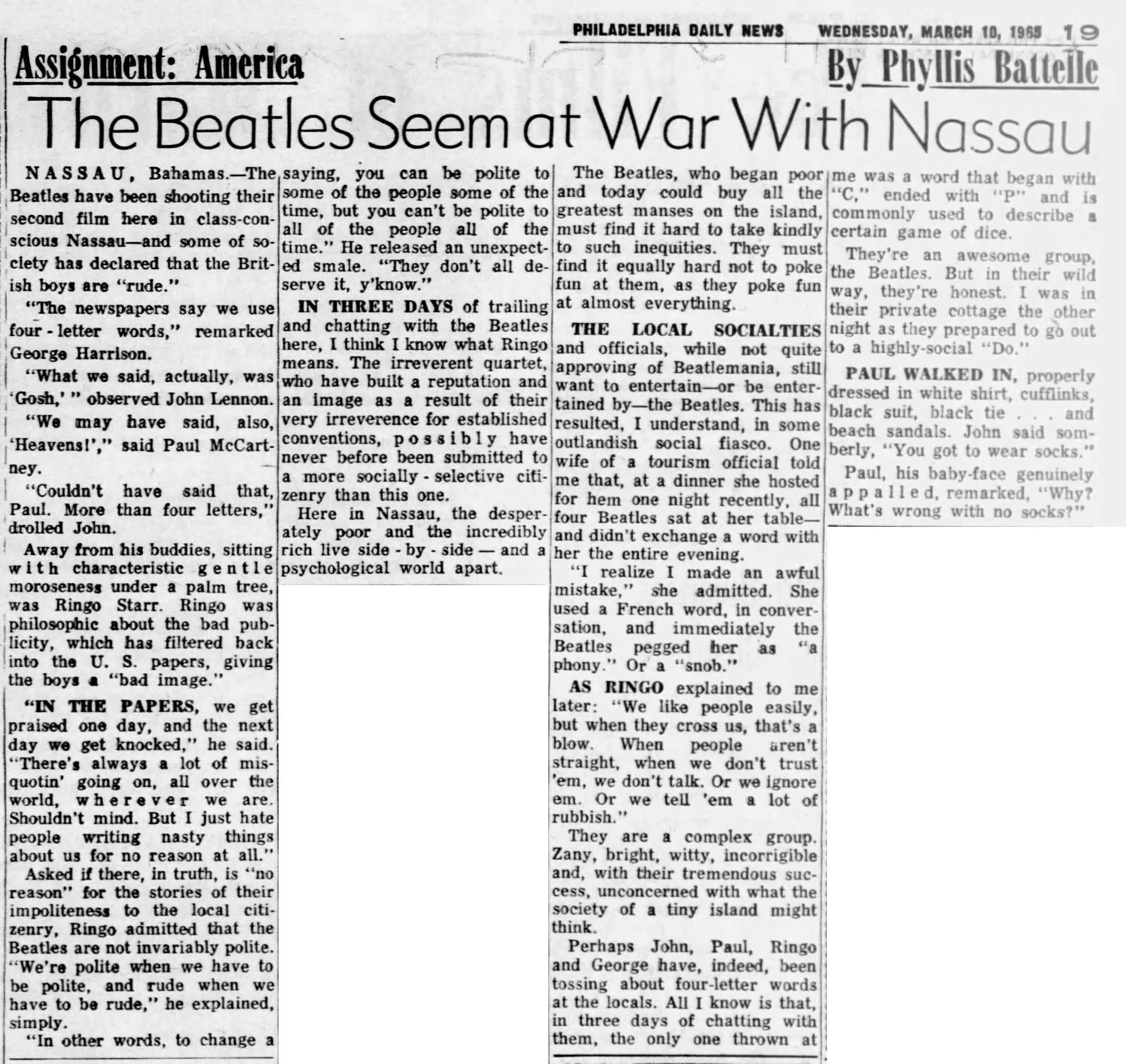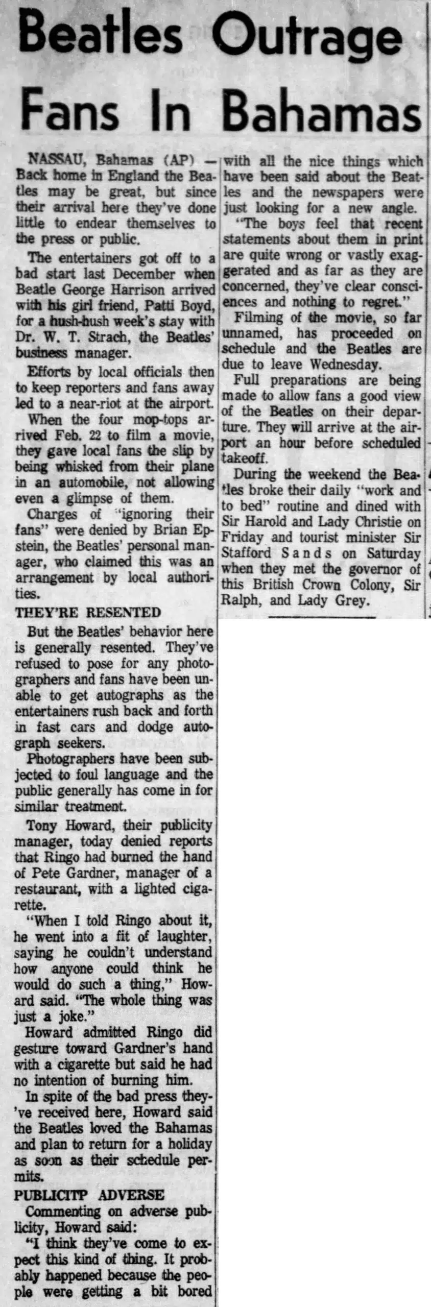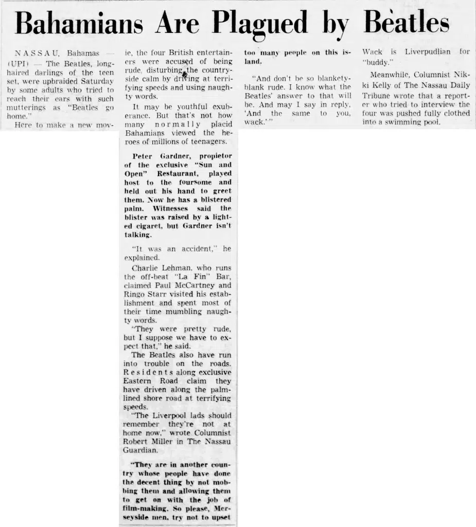 Article Feb 26, 1965 • Filming “Help!” in the Bahamas • Day 4