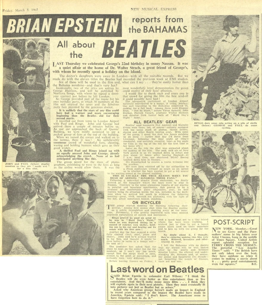 Article Feb 27, 1965 • Filming “Help!” in the Bahamas • Day 5