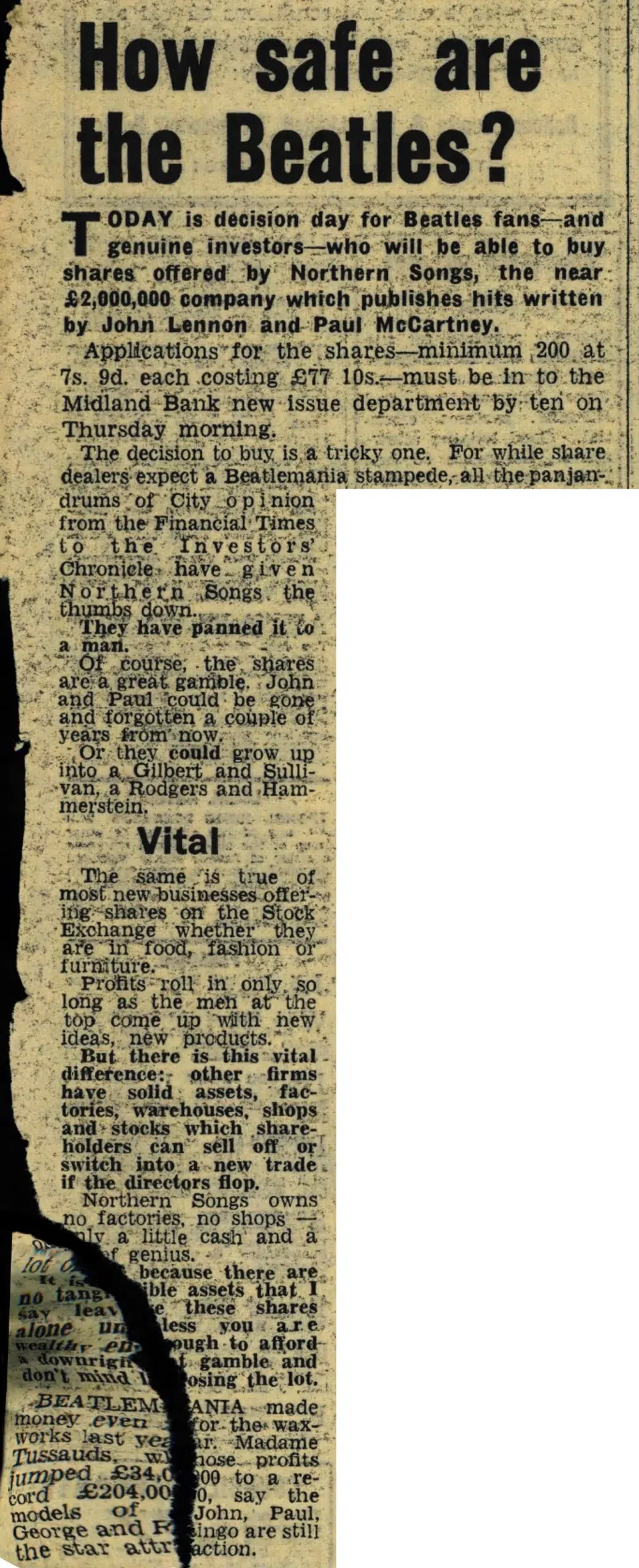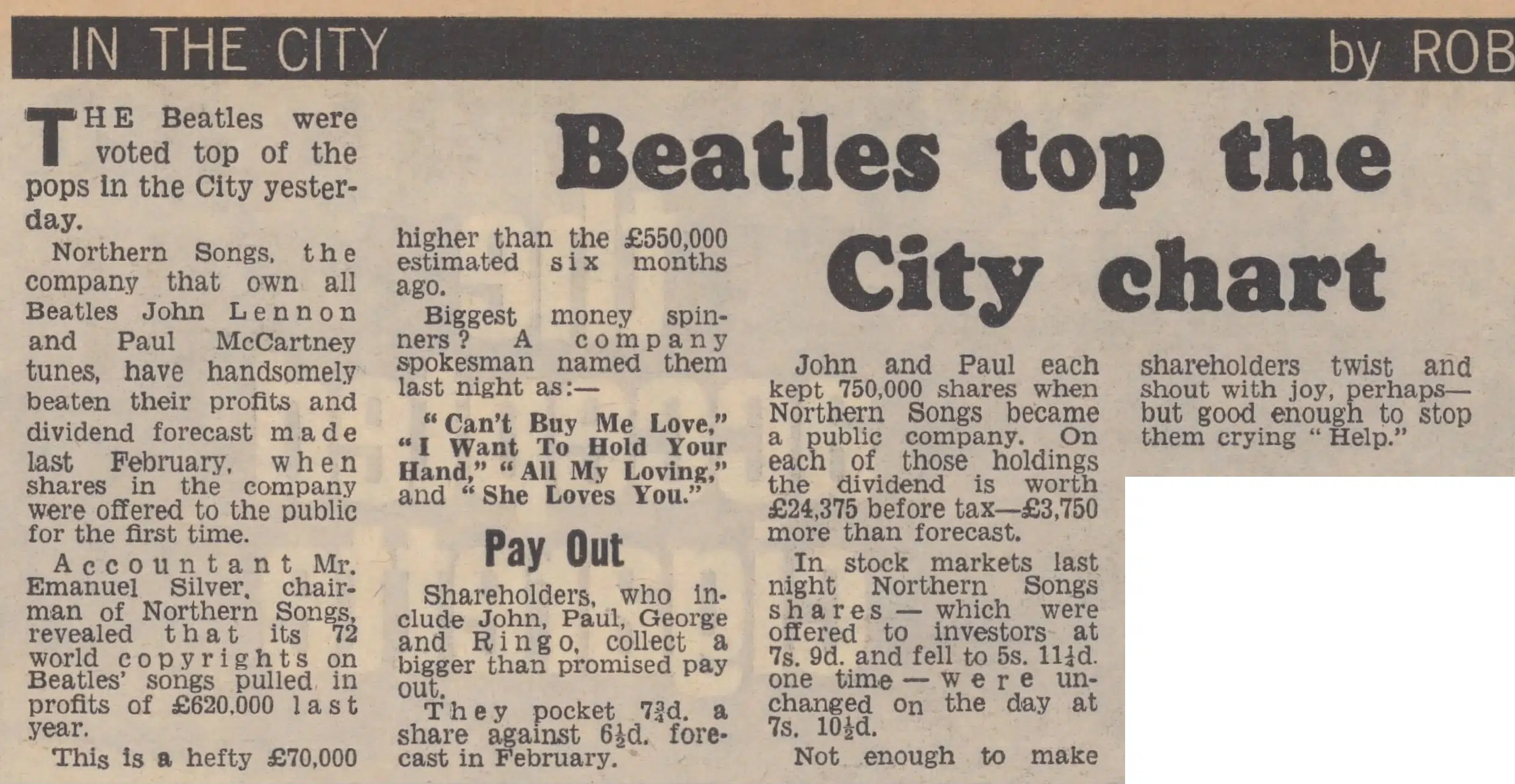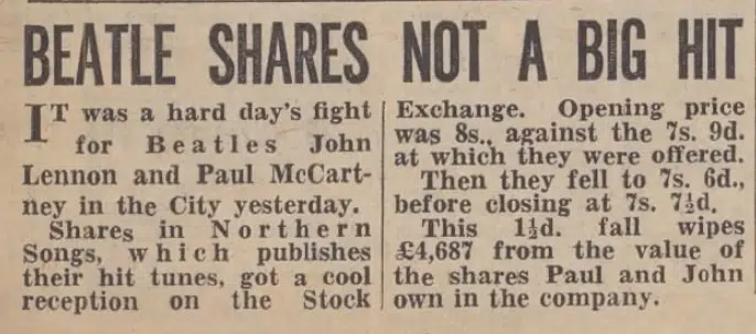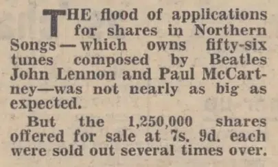Article Feb 18, 1965 • Northern Songs goes public on the London Stock Exchange