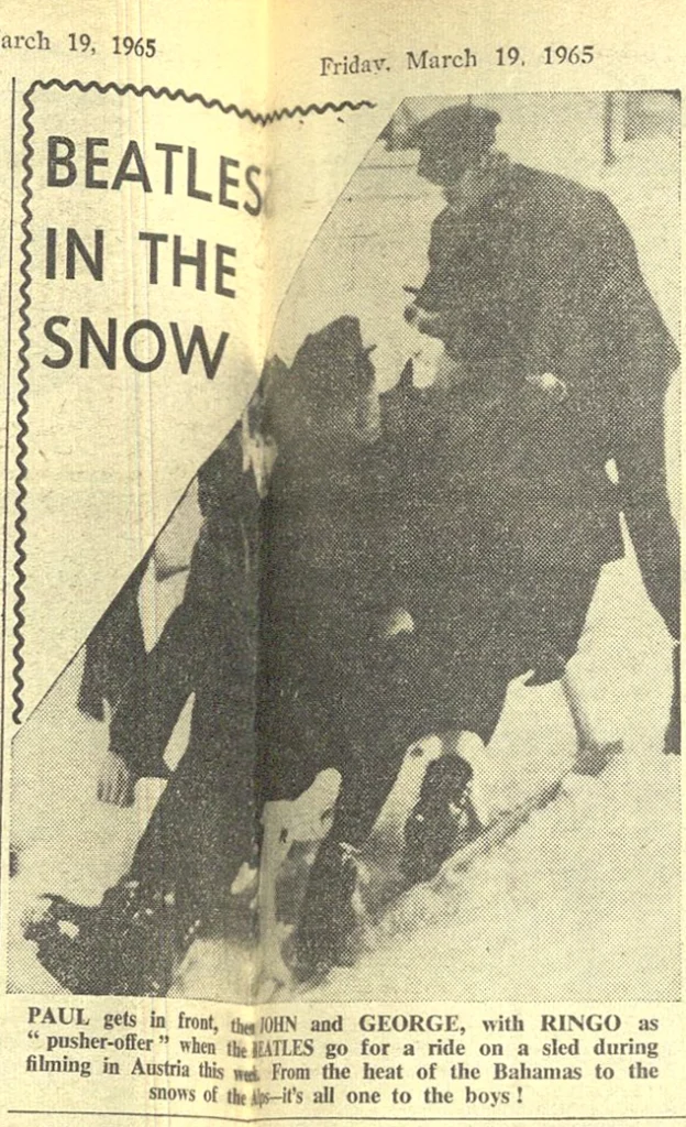 Following two weeks of filming Help! in the Bahamas, The Beatles began work on scenes in the snowy climes of Austria.