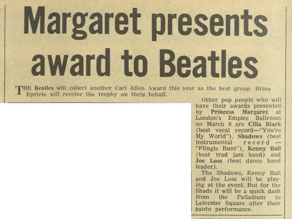 Article Mar 08, 1965 • The Beatles receive a Carl Alan Award