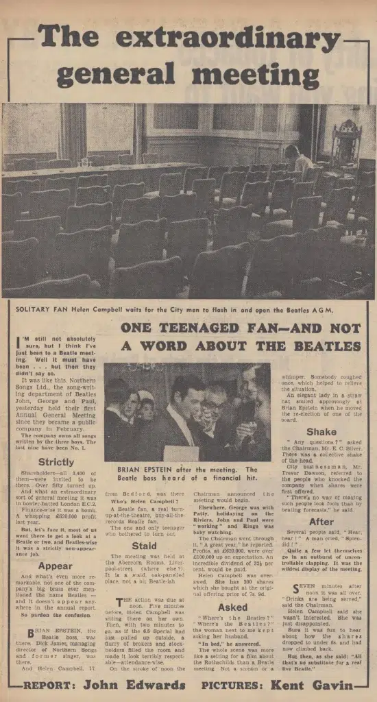 Article September 1965 • Northern Songs Annual General Meeting