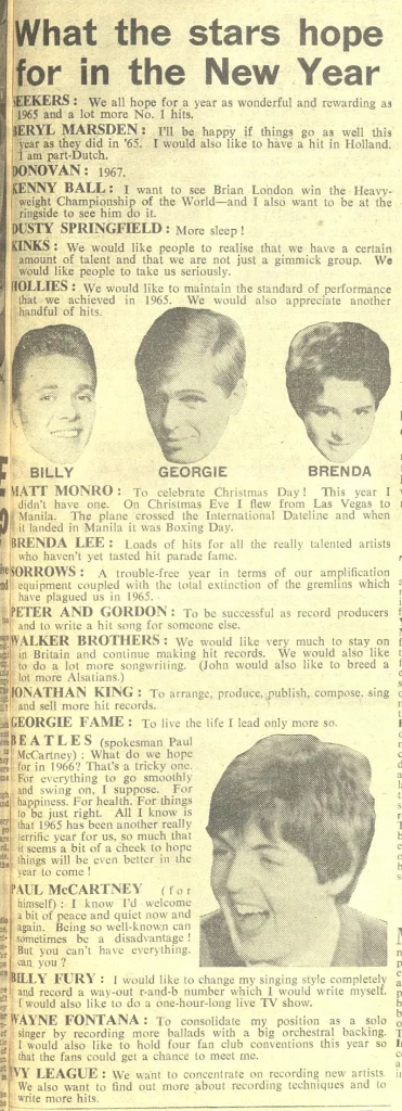 […] PAUL McCARTNEY (for himself): I know I’d welcome a bit of peace and quiet now and again. Being so well-known can sometimes be a disadvantage! But you can’t have everything, can you. […]
