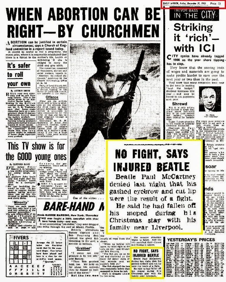 Article Dec 26, 1965 • Paul McCartney has a moped accident in Wirral, Liverpool