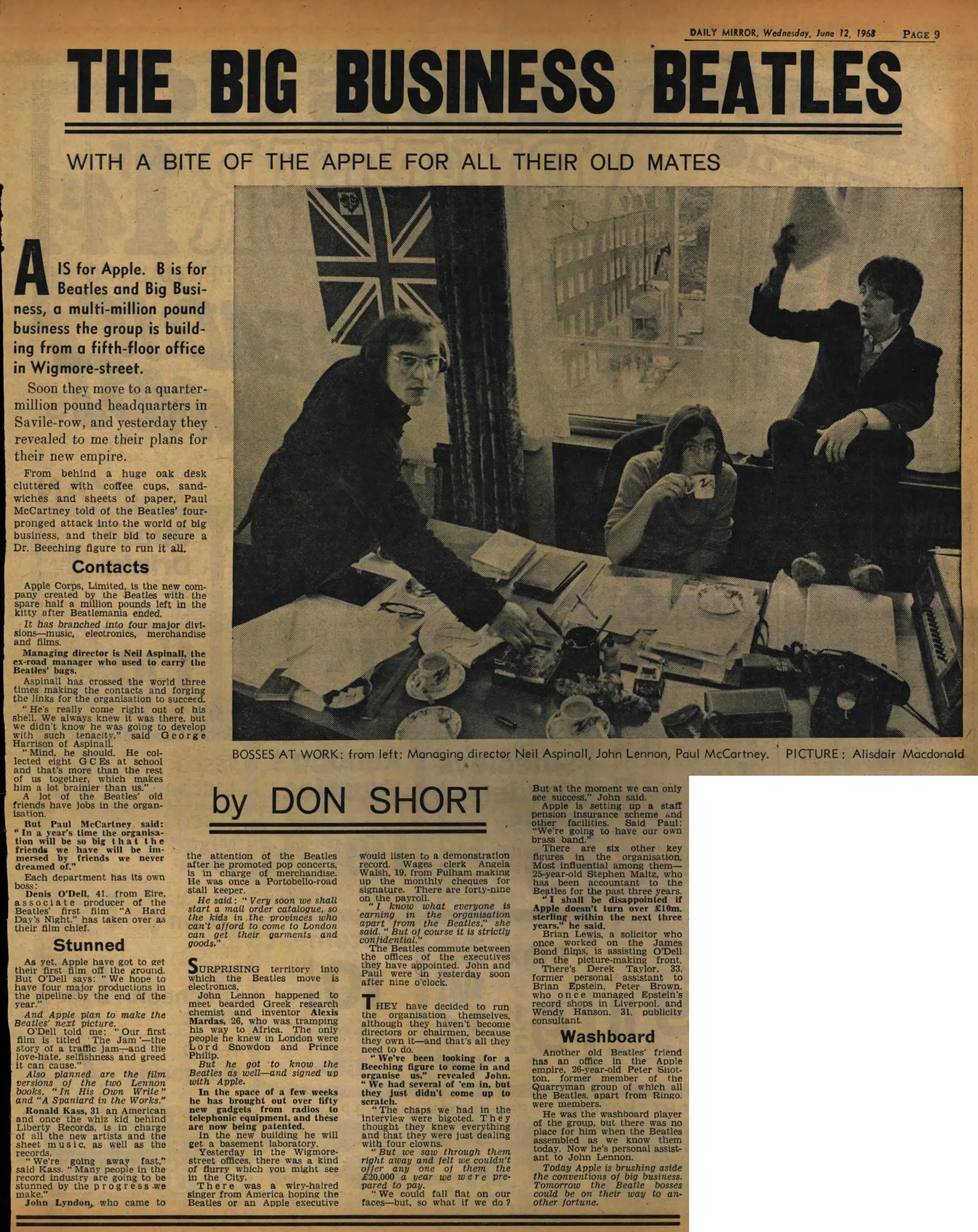Various friends and acquaintances were hired by The Beatles in the coming weeks and months, to manage Apple Corps and the different companies controlled by it. Among those, we can cite: