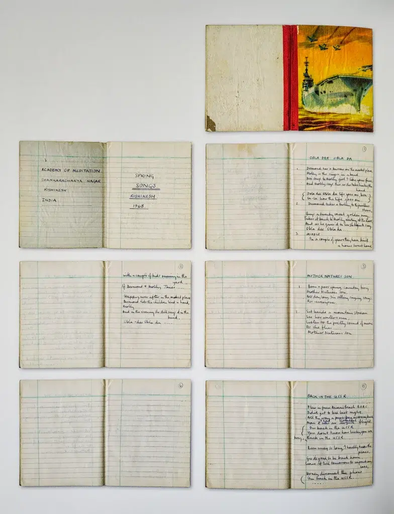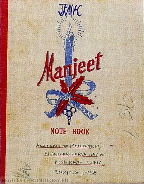 Later that afternoon, I heard guitars and the sound of Paul’s and John’s voices. They were sitting with Ringo among the potted plants on the steps of their bungalow. […] They were strumming their Martin acoustic guitars, singing fragments of songs, musically meandering through some of my favorites: “Michelle,” “All You Need Is Love,” “Norwegian Wood,” “Eleanor Rigby,” and others. Ringo was dressed in his favorite heavy, gold-brocade Nehru jacket and jeans […] John and Paul wore white cotton kurta pajamas, the most comfortable clothers to wear in India […] Paul started strumming again and John joined in. Paul had a pad of paper sitting on the step beneath him, and he started to sing the words that he had scribbled down. It was the chorus to “Ob-La-Di, Ob-La-Da.” They repeated it over and over again, and when they stopped Paul looked at me with a twinkle in his eyes and Said, “That’s all there is so far We’ve got the chorus but no words yet.”