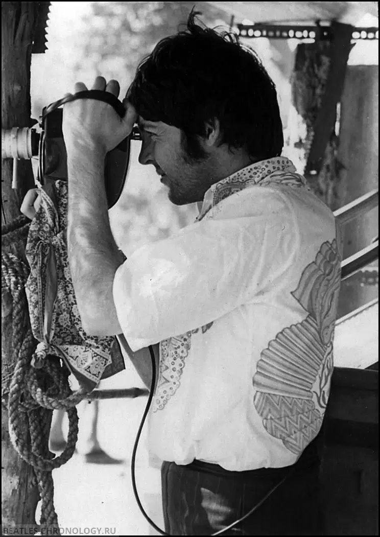 The Beatles shot extensive reels of film during their stay in Rishikesh, capturing both daily life at the ashram and their interactions with fellow guests. Denis O’Dell, head of Apple Films, was invited to India to explore the possibility of turning this material into a professional production for public release, but the idea never went beyond the planning stage.