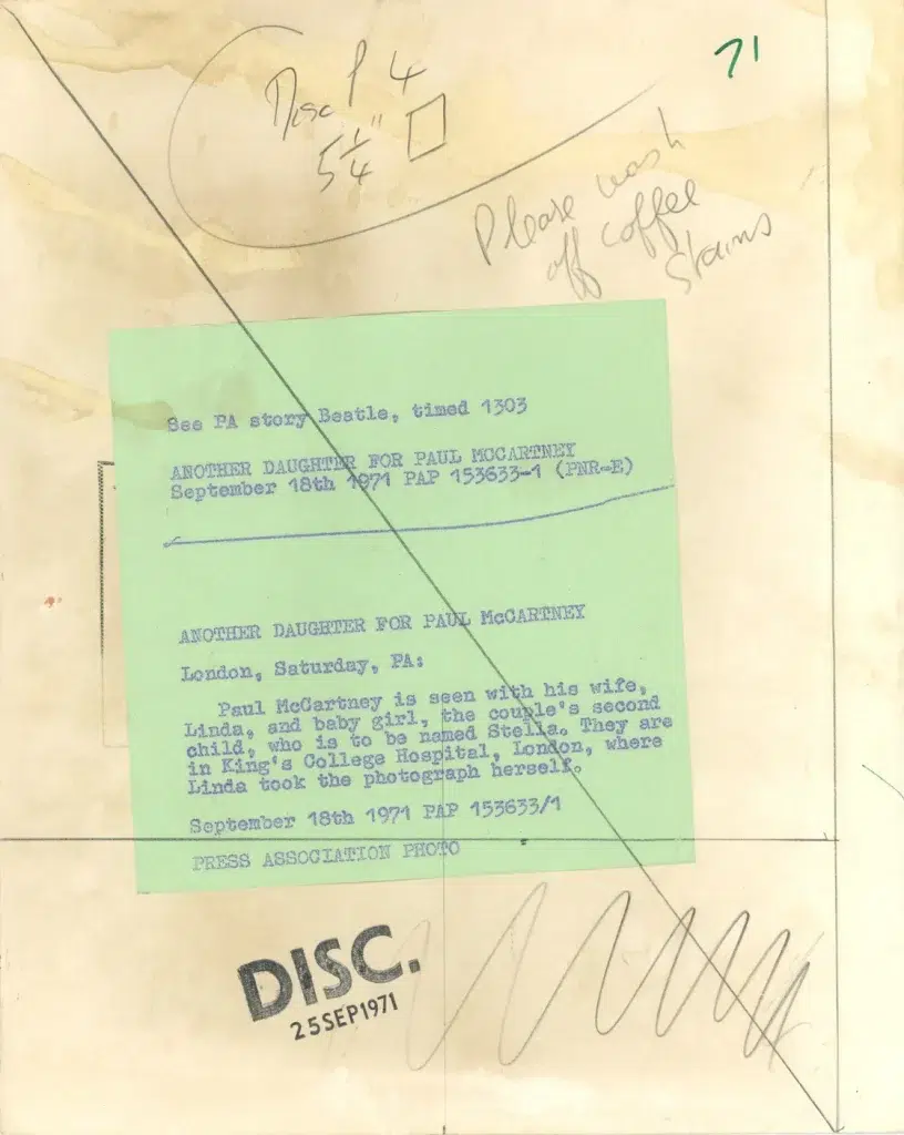 In early August 1971, Paul McCartney’s new band had been announced in the press, without any name given. Stella’s delivery inspired Paul to name it “Wings”.