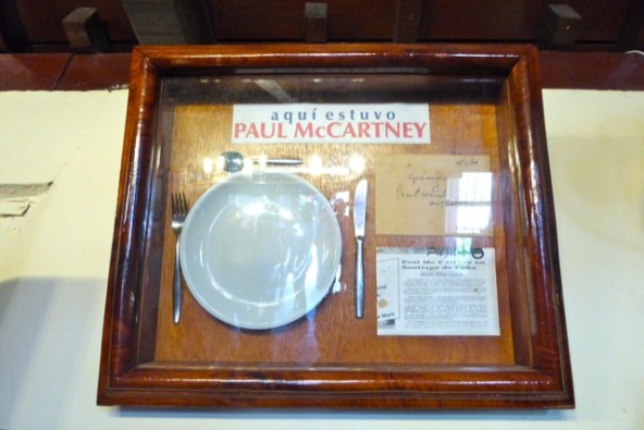 The plate, utensils and napkin McCartney used are now displayed on a restaurant wall, with the notation Paul McCartney Was Here. (McCartney signed the napkin and also wrote that his food was “Muy Bueno.)”.