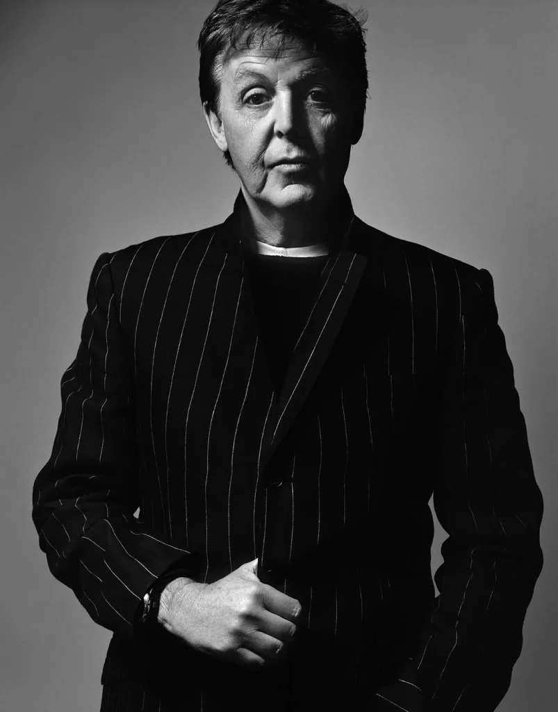 Come Monday, McCartney’s publicist is there to smooth things out. All is fine. Time is no problem but he’s not wearing the right clothes. I beg him to put on a dark round neck sweater and a dark grey pinstriped jacket on top of the white t-shirt he’s turned up in. He’s happy to oblige.