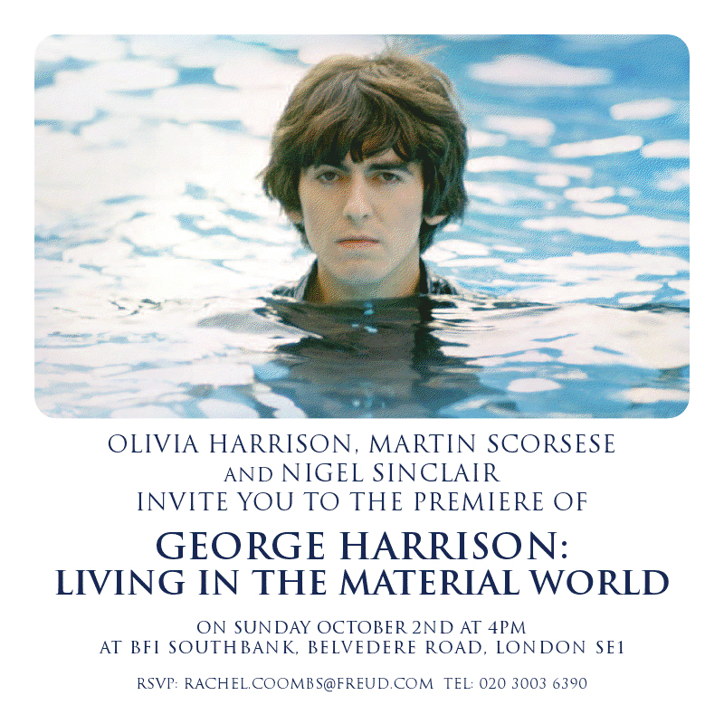 George Harrison: Living in the Material World is a 2011 documentary film directed by Martin Scorsese, based on the life of George Harrison, musician and former member of the Beatles. It earned six nominations at the 64th Primetime Emmy Awards, winning two Emmy Awards for Outstanding Directing for Nonfiction Programming and Outstanding Nonfiction Special. […] The film follows musician George Harrison’s story from his early life in Liverpool, the Beatlemania phenomenon, his travels to India, the influence of Krishna Consciousness movement in his music, and his relevance and importance as a member of the Beatles. It consists of previously unseen footage and interviews with Olivia and Dhani Harrison, friends, and many others. […]