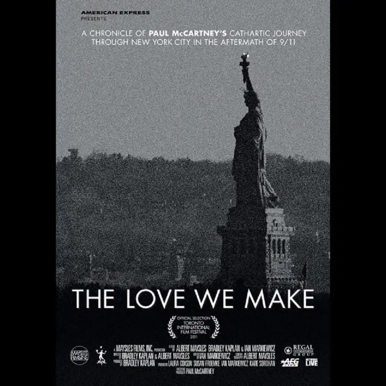 We are proud to announce the issue on 28th November 2011 of the unique and compelling Paul McCartney film “The Love We Make” on Blu-ray [Cat. No. ERBRD5125] and DVD [Cat. No. EREDV914]. The film was directed by Albert Maysles [“Gimme Shelter”] and Bradley Kaplan and follows Paul as he journeys through the streets of New York City