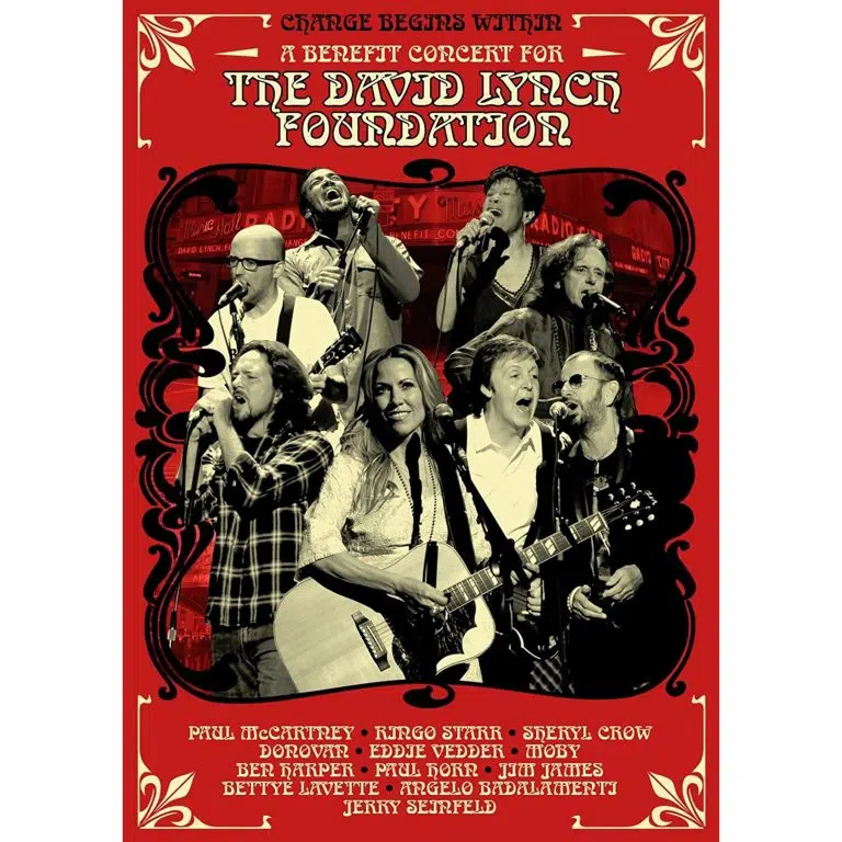 Yes! Finally, the 2009 Change Begins Within: A Benefit Concert for the David Lynch Foundation arrives on DVD via Eagle Rock Entertainment on September 1, 2017. It’s not the complete show, which was a fundraiser intended to benefit (as the DVD’s title makes plain) the David Lynch Foundation. This 86-minute programs omits some key moments (you didn’t think Sheryl Crow showed up for just one song, right?). But enough made the final cut to make it easily recommendable, particularly to Beatles fans since Paul McCartney and Ringo Starr make up the lion’s share of the running time. And they even perform together, the concert’s highlight!