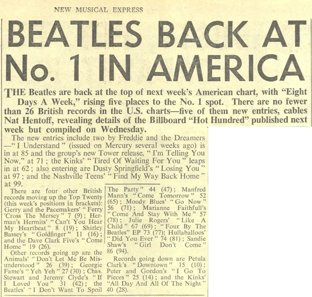 Single Feb 15, 1965 • "Eight Days A Week / I Don't Want To Spoil The Party" by The Beatles released in the US