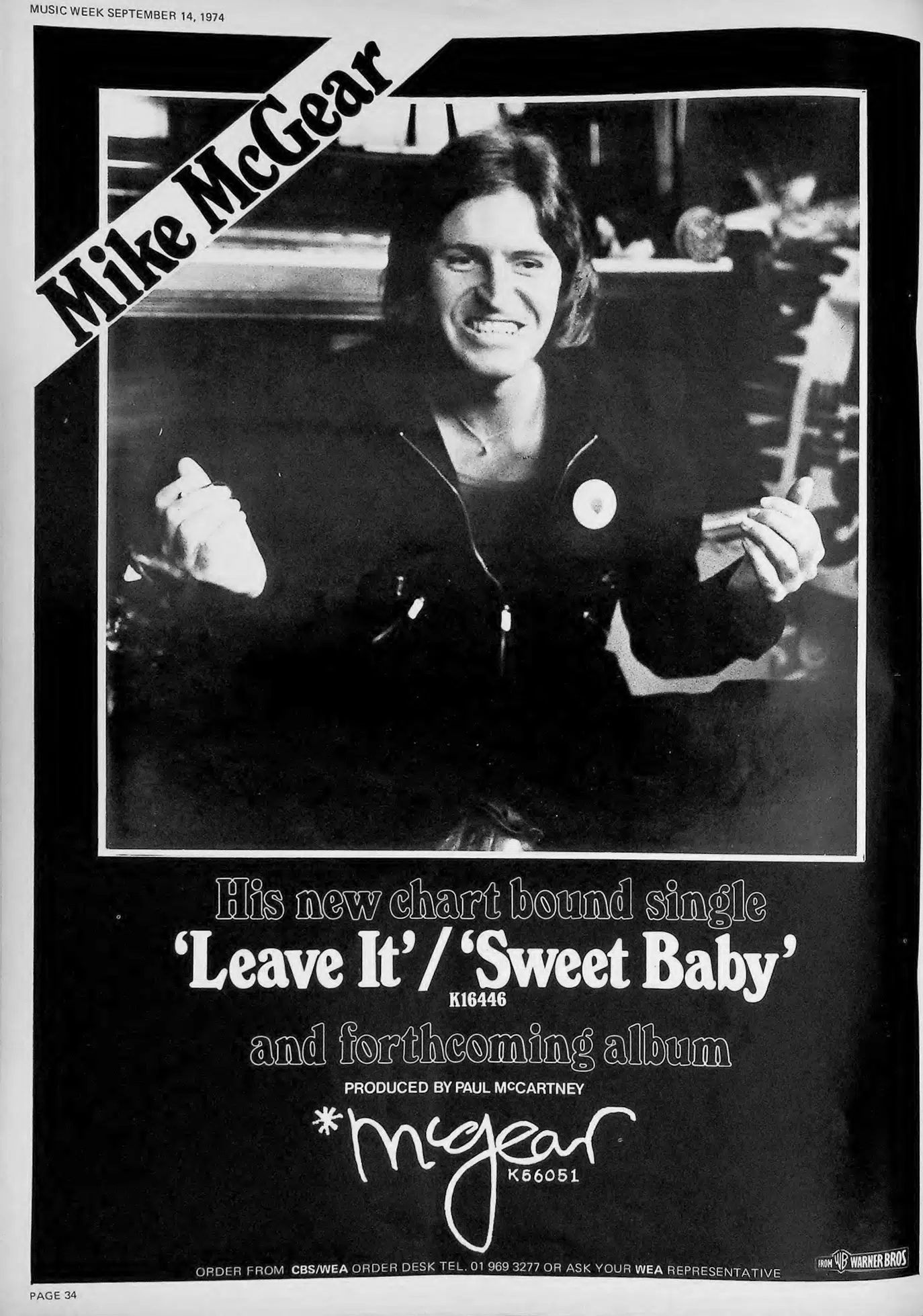 Album Aug 30, 1974 • "Leave It / Sweet Baby" by Mike McCartney / McGear released in the UK