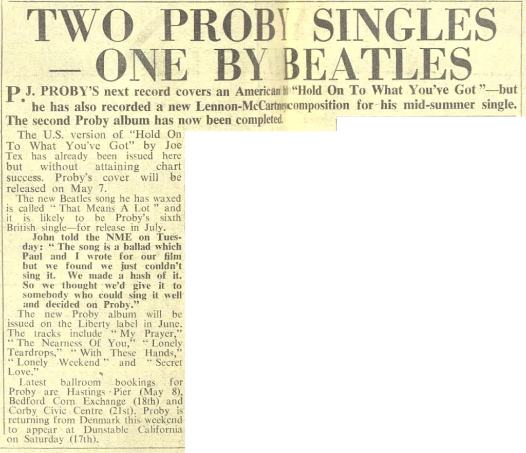 Single Sep 17, 1965 • "That Means A Lot" by P.J. Proby released in the UK