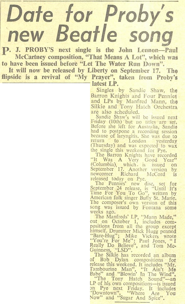 Single Sep 17, 1965 • "That Means A Lot" by P.J. Proby released in the UK