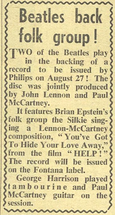 Single Sep 10, 1965 • "You've Got To Hide Your Love Away" by The Silkie released in the UK