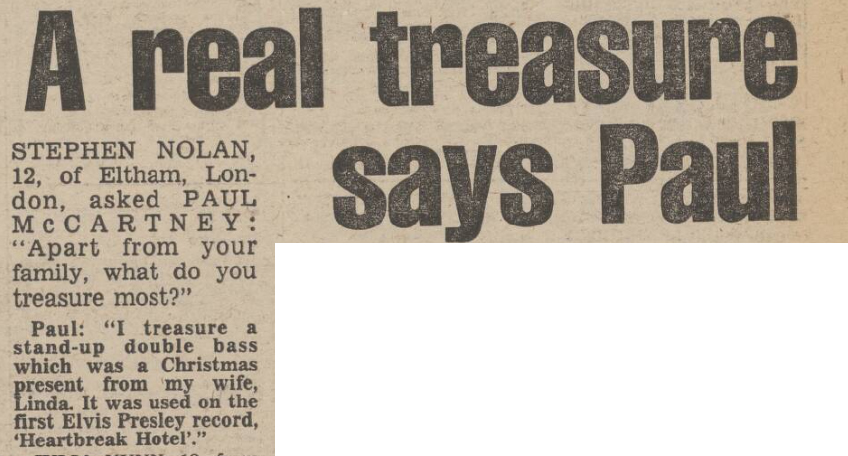 From Daily Mirror – Saturday 15 September 1979From Bill Bernstein (@billbernstein) • Instagram photos and videos – PAUL MCCARTNEY, EAST SUSSEX, ENGLAND, 1992 I was sent to the UK by Time Magazine to take this photo for an article on Paul McCartney turning 50. I’d had the pleasure of working by Paul’s side for many years as his personal photographer as he toured throughout the world starting in 1989 until 2005. It was beyond my wildest dreams that I, the world’s biggest Beatles fan from the age of 13, got to hang out with this man, and his first wife Linda, on the road for many years. He is an amazing showman, businessman, activist and all around funny and magical guy! Which you might not expect from one of the most successful musicians of all time. Here, Paul is posing outside his property in Sussex with a standup bass that belonged to Bill Black,Elvis Presley’s bass player. It was Linda McCartney who gave Paul this legendary bass as a gift. […] Photo by Bill Bernstein taken 25 years ago in the south of England at one of Paul’s homes on assignment for Time Magazine in celebration of his 50th birthday. Paul is holding the standup bass used by Elvis Presley’s bass player Bill Black (note the original hardware store lettering scotch taped to the bottom of the bass). It was gifted to Paul by his then wife Linda several years before this shot was taken. This shot was never used by Time (they chose a different shot taken that day) but is available thru the Morrison Hotel Gallery.