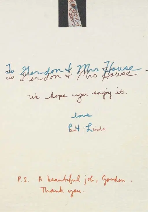 In 1967, through his connexions with artist Peter Black and art dealer Robert Fraser, Gordon House, along with Gene Mahon and Al Vandenberg, designed the back sleeve of the “Sgt. Pepper’s Lonely Hearts Club Band” album. He was in charge of the typography elements of the back sleeve.