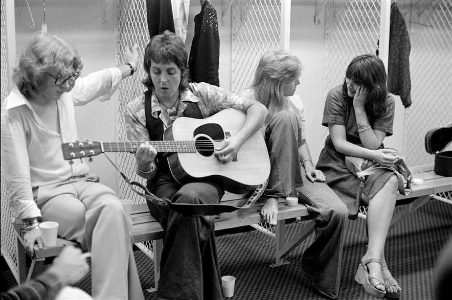 From TwitterFrom Facebook – Paul and Linda backstage with Peter Asher and Linda Ronstadt, after a show in Washington DC during the 1976 Wings over America tour.