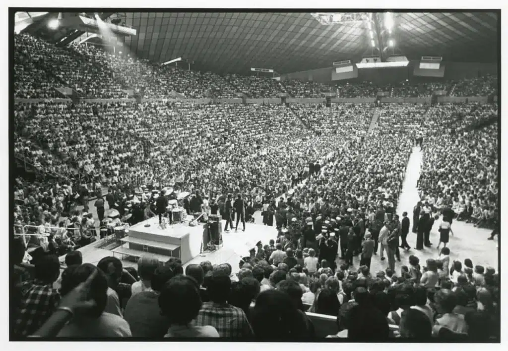 A single concert had been planned in the 700-seat Congo Room at the Sahara, but promoters — surprised by the overwhelming interest in the Fab Four — quickly booked the convention center and added a second show. Nearly 17,000 fans packed the two sold-out performances.