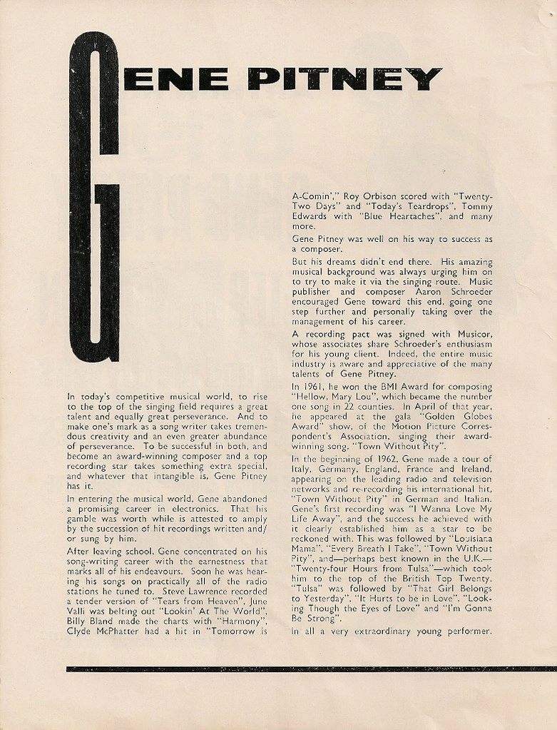 Not one of the 2,000 people who sat expectantly in the Adelphi on Tuesday night realised whose voice it was that announced over the loudspeaker: “Arthur Howse presents… the Gene Pitney show! And to start the show in swinging style — the Mike Cotton Sound!“