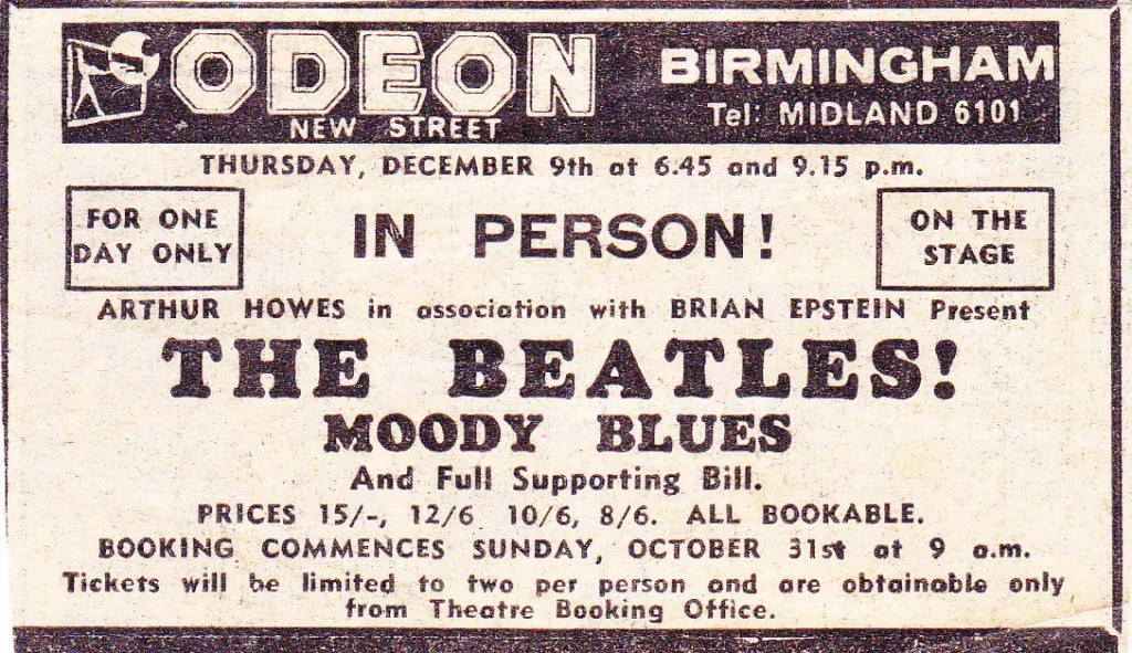 […] It so happened that the dates coincided with some of the worst weather of the winter. One example was at Birmingham: the Beatles arrived at the theatre TEN MINUTES after they had been due to go on-stage. Everyone backstage was frantic. Bad fog had held the group up and all kinds of ruses were being tried to keep the audience happy and unknowing; the Moody Blues extended their set and there were two intervals, instead of the normal one!