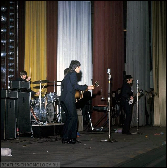 The only footage of the 1965 UK tour, shot by a German journalist on silent black and white 8mm film. Included in this footage are 1:15 of the opening act, The Moody Blues, and shots of the tour program at the end. We also get to see great footage of Paul playing Yesterday on his organ. The audio had to be synced with the Budokan performance since there is no actual recording of this tour available.