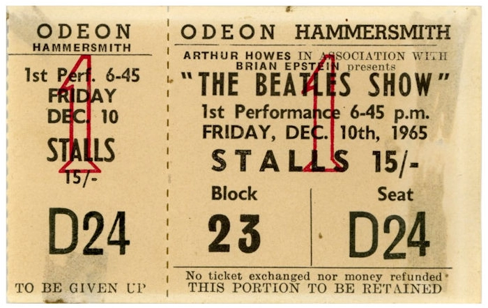 The Beatles played four concerts in London over two days as part of their final UK tour. The first two took place at the Hammersmith Odeon on this day, at 6:45 pm and 9 pm. Also appearing on the bill were the Moody Blues, the Paramounts, Beryl Marsden, Steve Aldo, the Koobas, and the Marionettes.