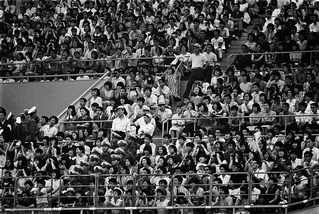 The audience were reserved, but they were up on their feet – or they tried to be, but there were police all around the stadium with cameras with telephoto lenses, and anybody who stood up and looked like they were going to run toward the stage was photographed. The people were very restricted as to what they could do and how they could respond to us. It was a warm reception – but a bit clinical, as Japan is.