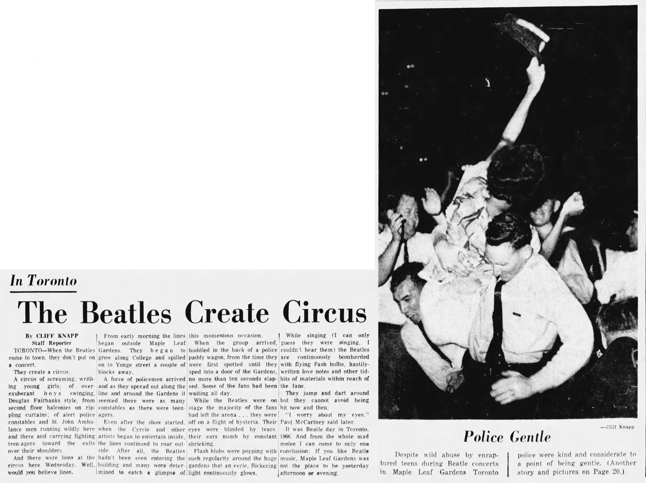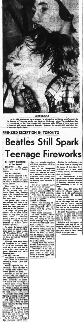 It was Beatle day in Toronto, 1966. And from the whole mad melee I can come to only one conclusion: If you like Beatle music, Maple Leaf Gardens was not the place to be yesterday afternoon or evening.