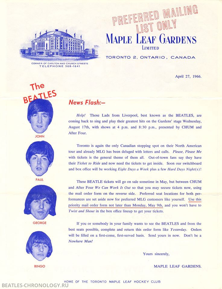 Concert Aug 17, 1966 • Canada • Toronto • 4pm show