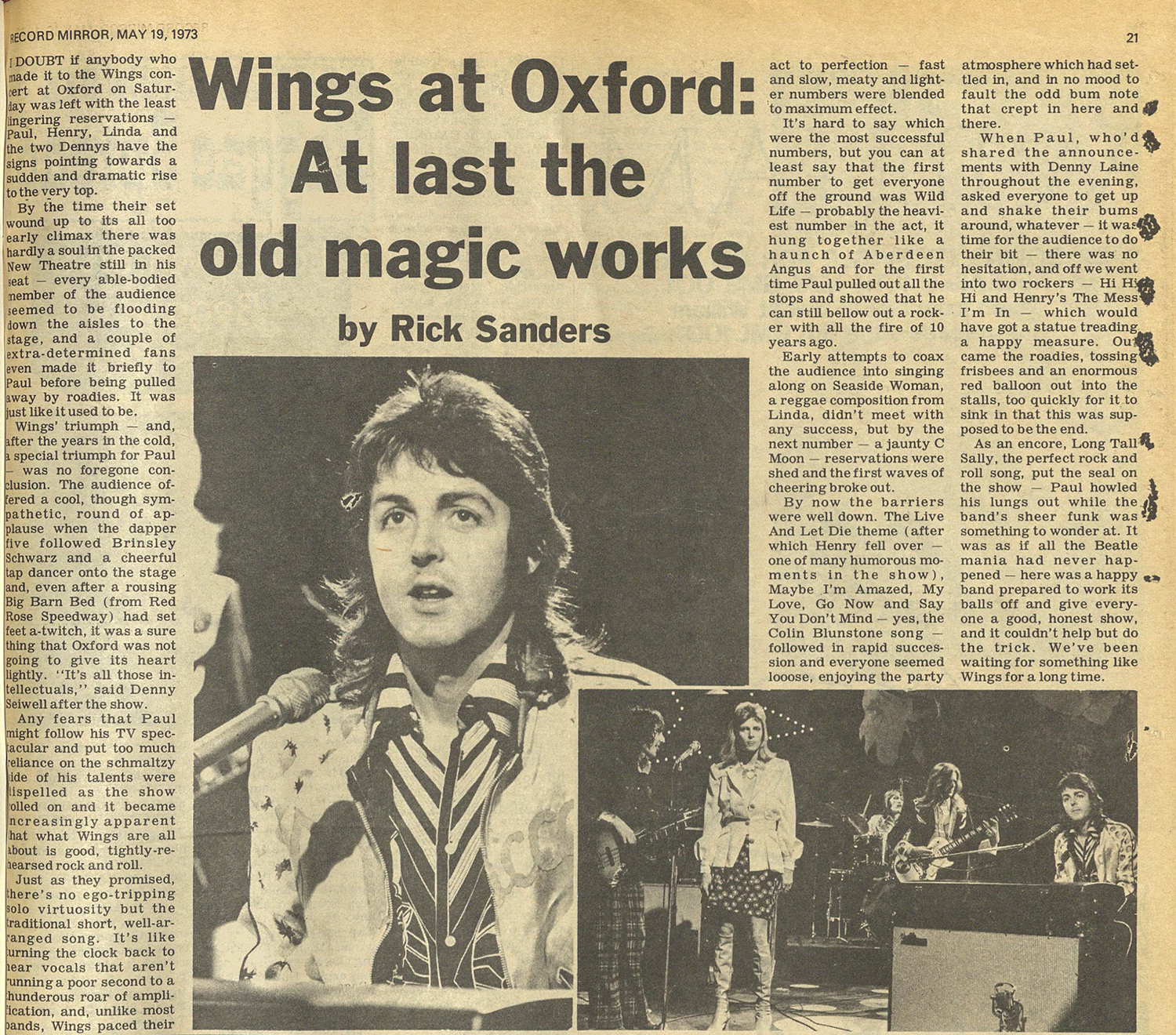 Wings at oxford: At last the old magic works