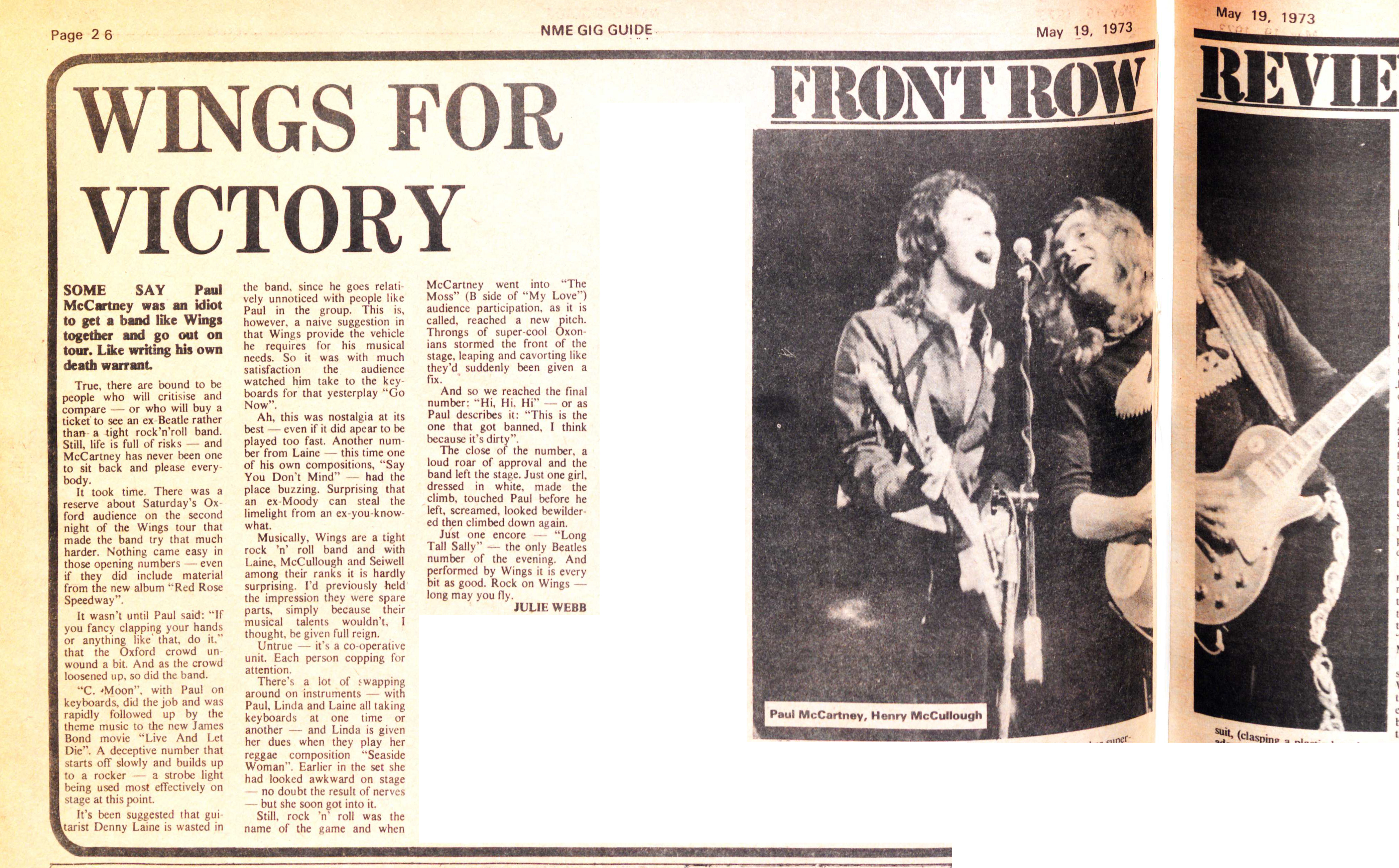 I DOUBT if anybody who made it to the Wings concert at Oxford on Saturday was left with the least lingering reservations – Paul, Henry, Linda and the two Dennys have the signs pointing towards a sudden and dramatic rise to the very top.