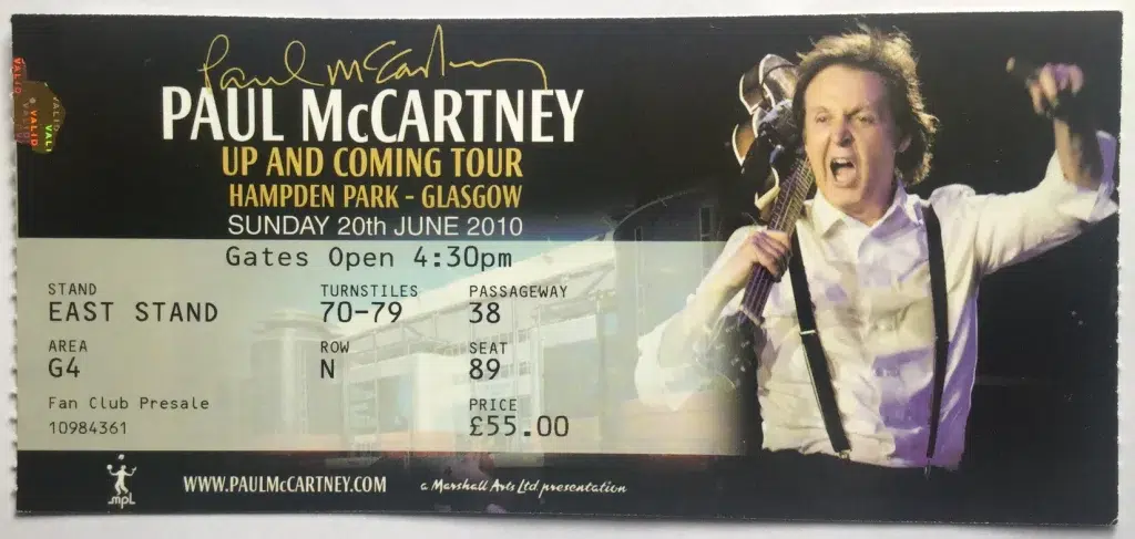 Anticipation for the concert was high as this was Paul’s first concert in Scotland for twenty years. He last appeared live at Glasgow’s SECC Arena on June 23rd, 1990. Although a concert was pencilled in for a concert at Celtic Park on May 30th 2003 during his Back in the World tour, he had to cancel because of ill health and scheduling conflicts.