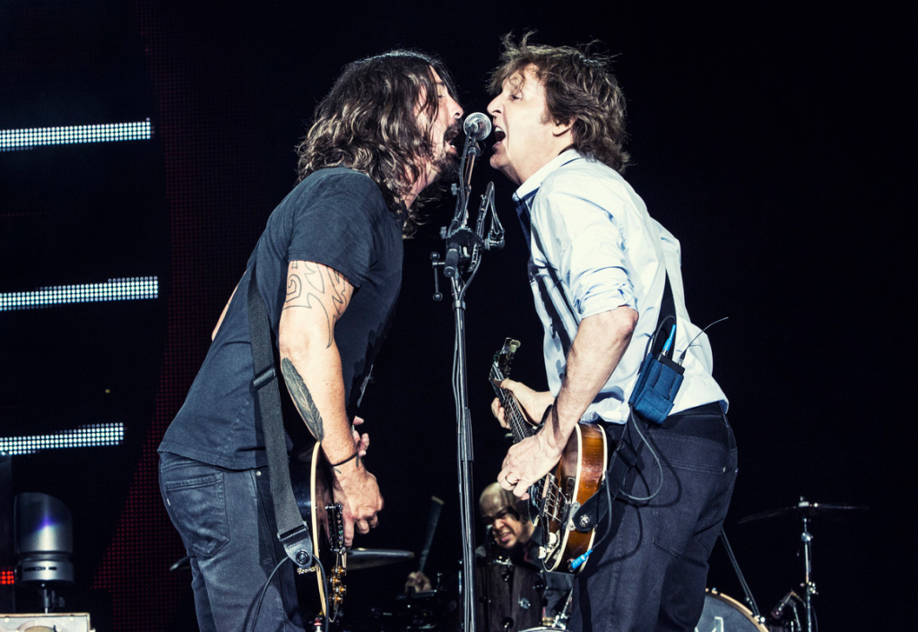 Paul McCartney made rock history on Friday night when he brought out Nirvana’s surviving members during the encore of his show at Seattle’s Safeco Field. It was only the second time that drummer Dave Grohl and bassist Krist Novoselic (plus touring guitarist Pat Smear) have performed together in Nirvana’s hometown since Kurt Cobain’s death in 1994, and the first time they’ve played there in more than 15 years.