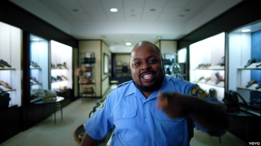 As producer, Herrington’s role was to take her husband’s concept and execute it, including hiring all the crew. The bulk of filming was over two nights. The first night was primarily the security guard, filmed at the high-end men’s clothing store Rubensteins, according to The New Orleans Advocate. But none of the three original videos was fully shot in sequence.