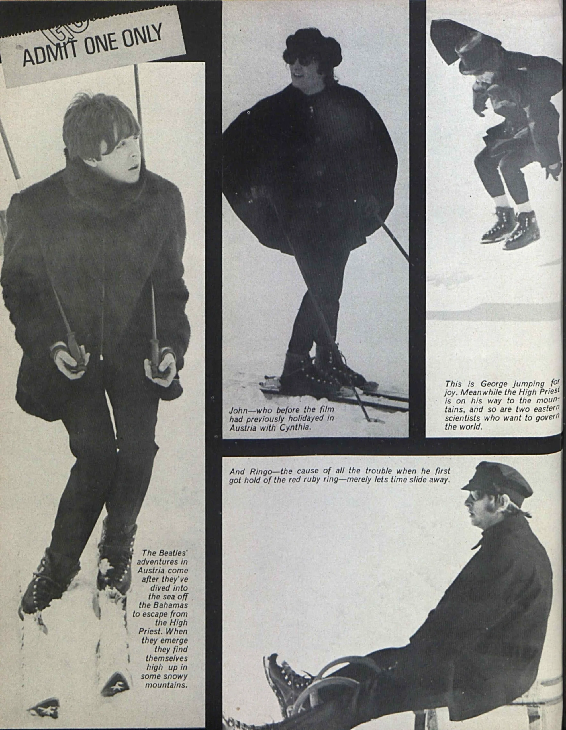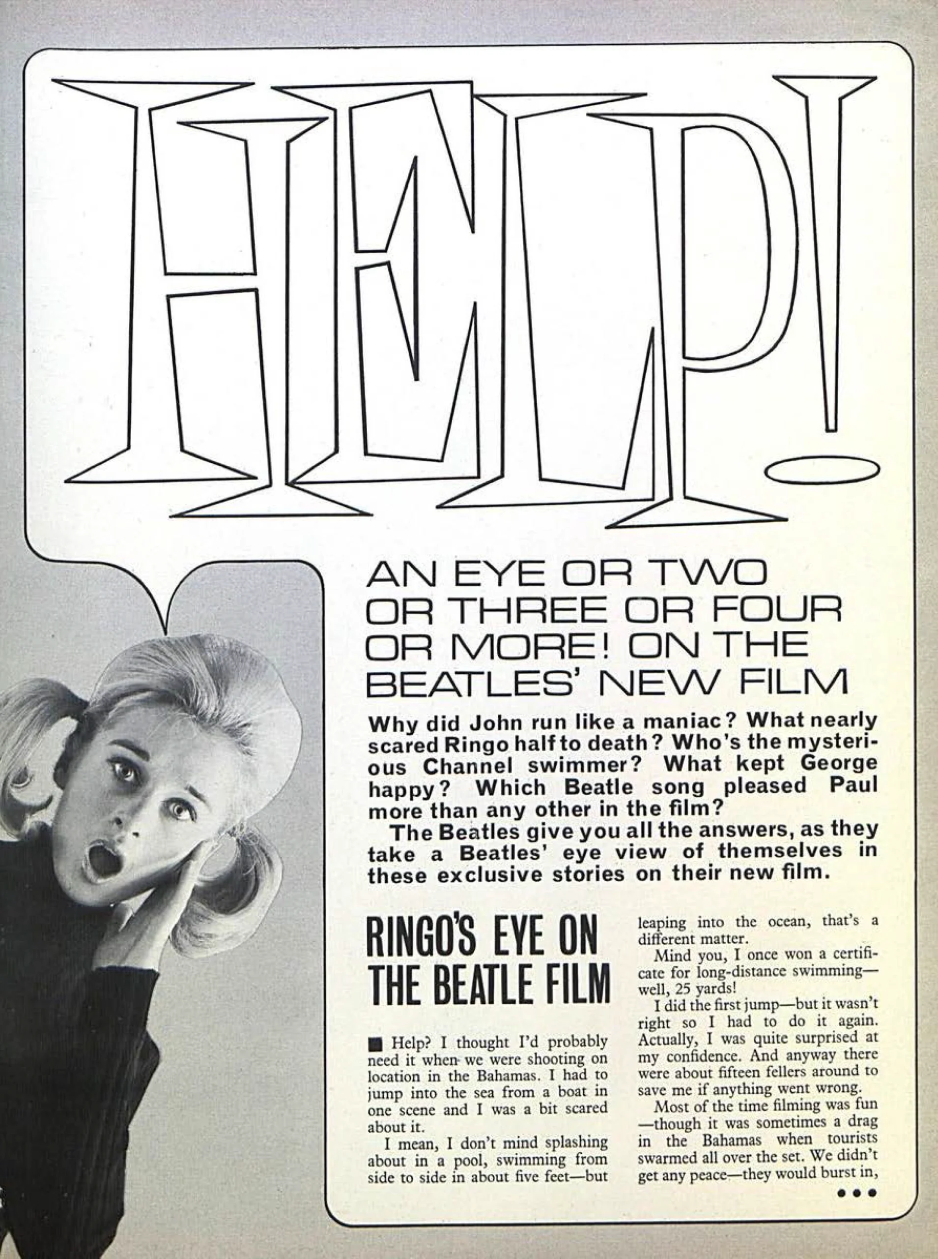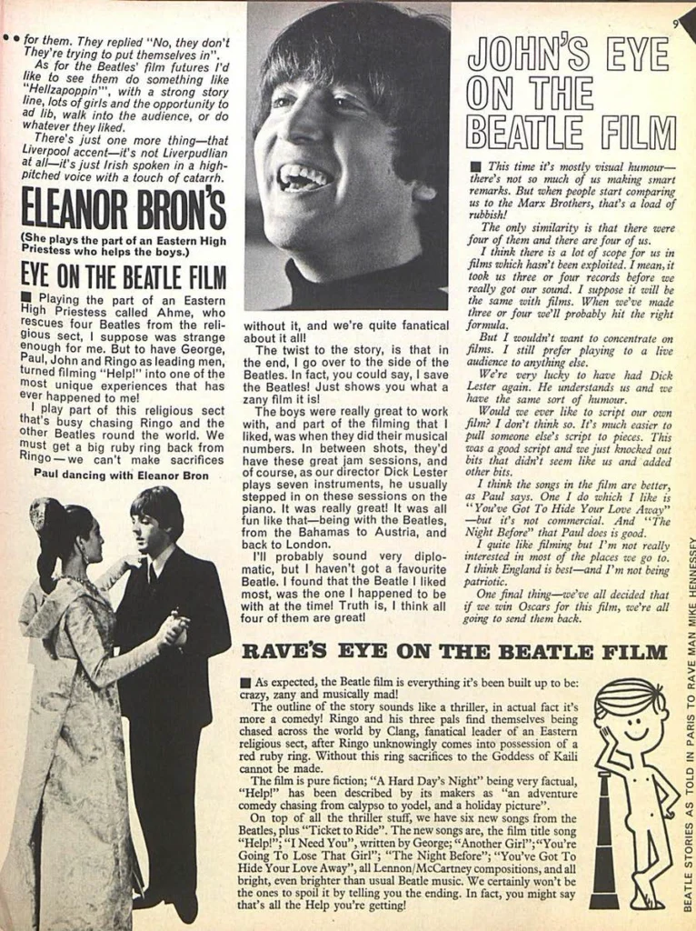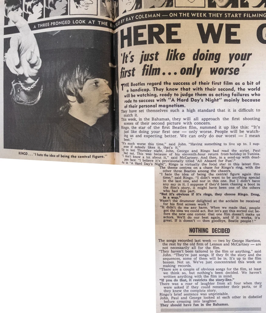 We enjoyed making Help! more than Hard Day’s Night, but looking back on the two I think Hard Day’s Night was the better film. We knew we couldn’t have another Hard Day’s Night — and with the next one we want to do something even more different. Help! was great but it wasn’t our film — we were sort of guest stars. I think everybody thought a little bit too grandly about Help! — all those glamorous locations. It was fun, but basically as an idea for a film it was a bit wrong.
