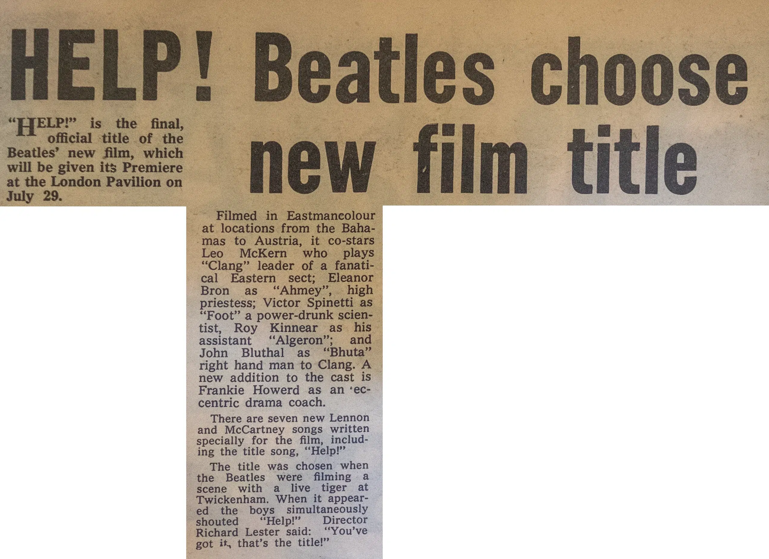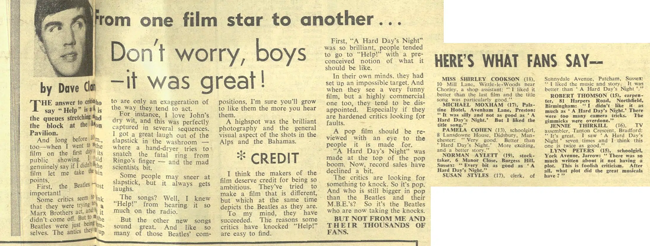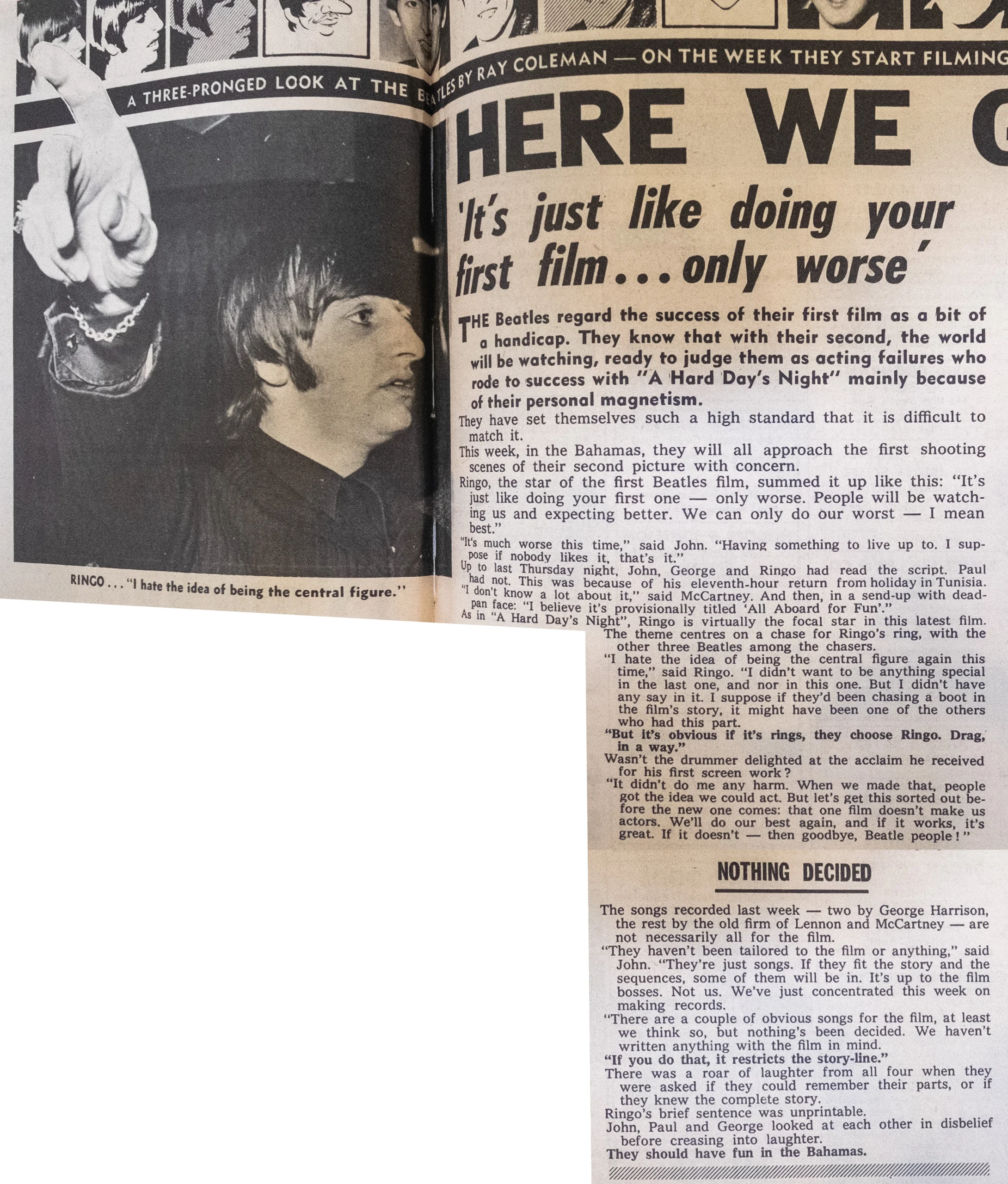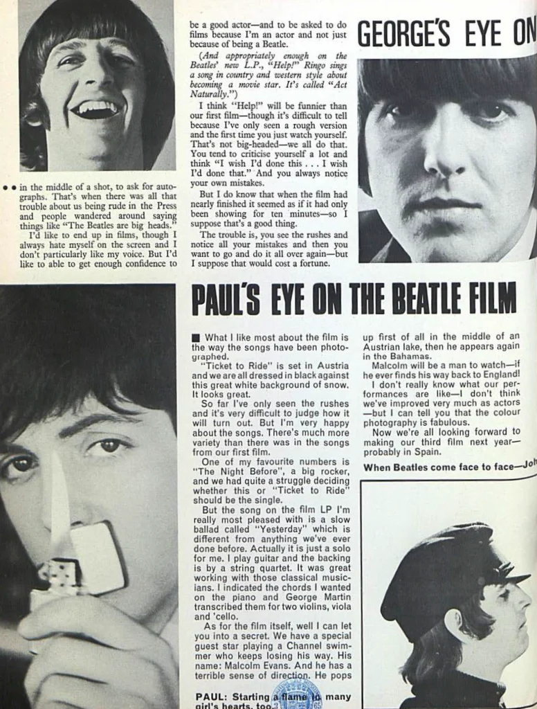 Paul: “Filming Help! stretched us a bit, giving us more than one line at a time to say.”