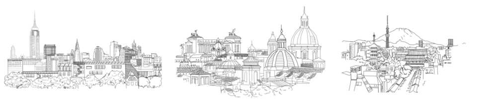 Here are some of Sara’s cityscapes before they were composited into the piece.