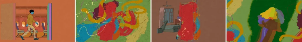 “Follow the band on tour, as they face an ever-changing backdrop of cities, hotels, roads, and gigs, with only each other to rely on. A magical dancer appears to each of them, representing inspiration and creative freedom.” – Richard Barnett, Trunk Animation.