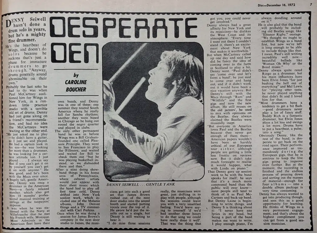 Interview Dec 16, 1972 • Denny Seiwell interview for Disc And Music Echo