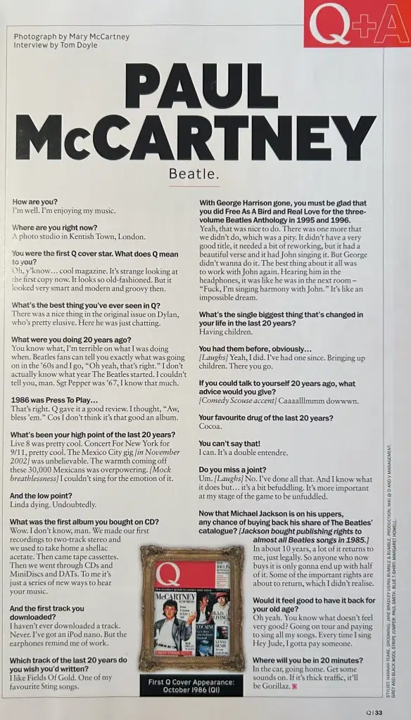 Interview November 2006 • Paul McCartney interview for Q Magazine
