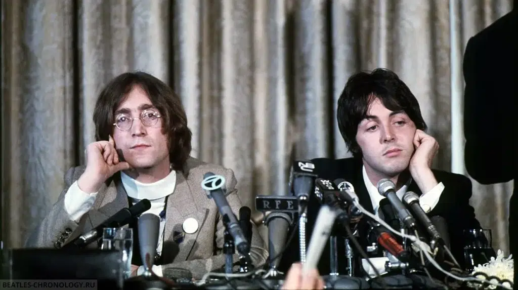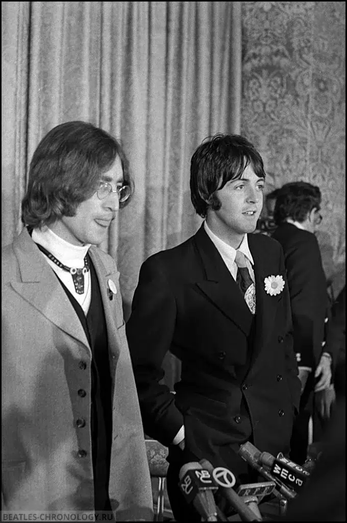 From May 11 to May 15, 1968, John Lennon and Paul McCartney were in New York, to promote their newly-formed company, Apple Corps. On May 14, they held a press conference at 1:30 pm on the 14th at New York’s Americana Hotel.