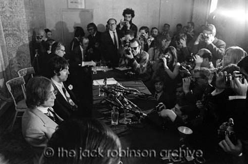 Linda Eastman attended the press conference as a photographer. Some of her photos were published in the press article “101 Hours with John Lennon & Paul McCartney,” written by Lillian Roxon and featured in Eye Magazine in September 1968.